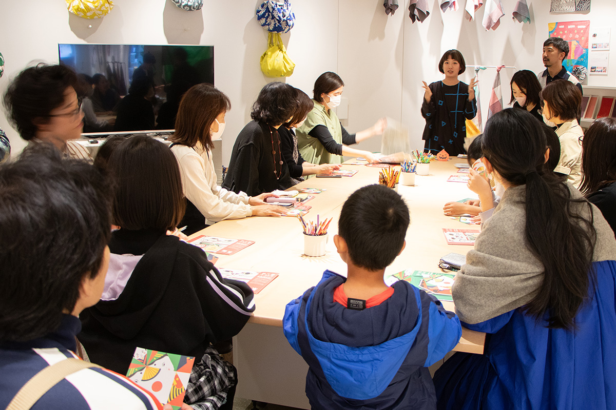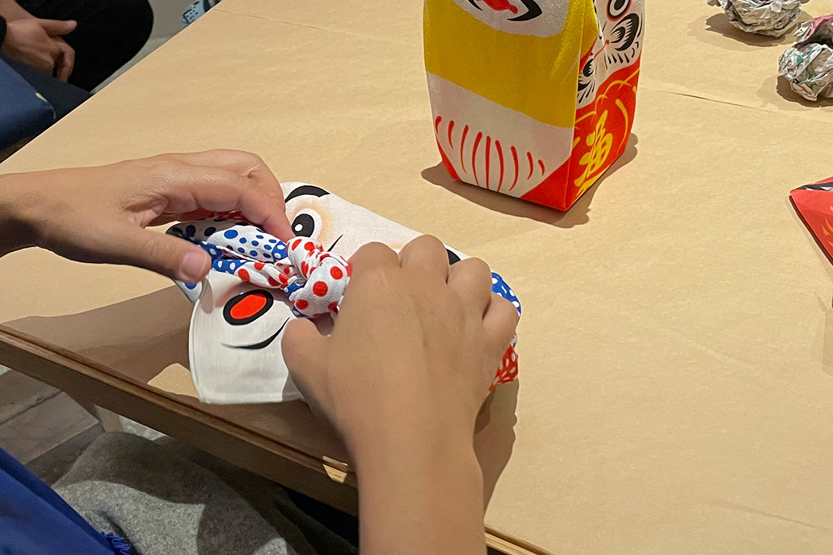 ロングセラーのふろしき「48福コチャエ」の楽しい包み方も体験していただきます。