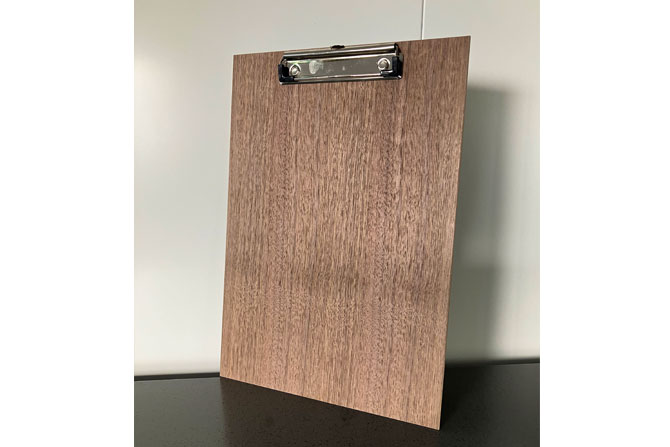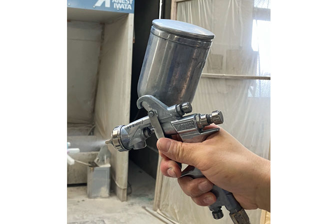 スプレーガンを使用して、木製バインダー(A4サイズ)に塗装をします。完成品は当日お持ち帰りできます。