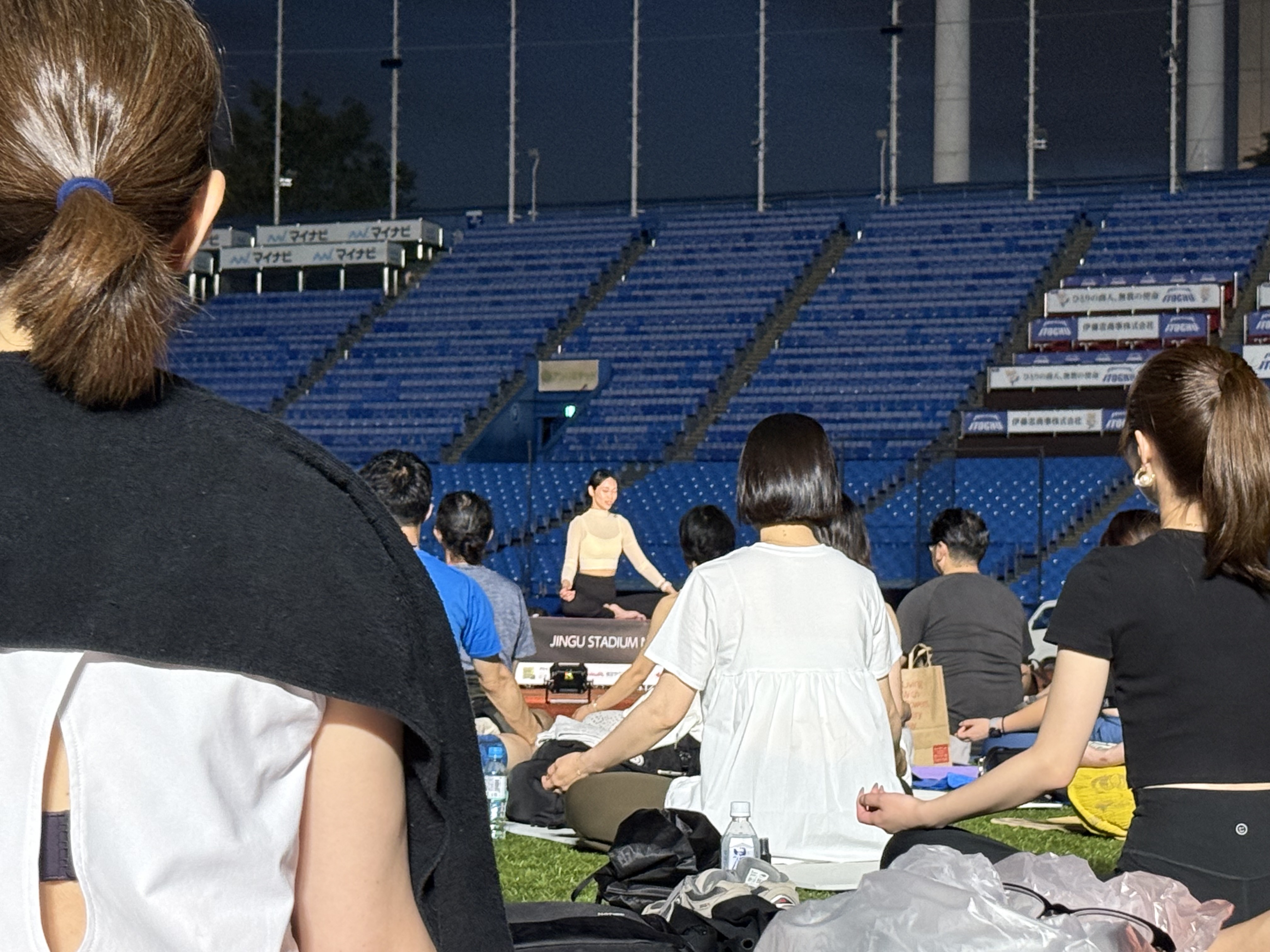 その後、希望者で神宮球場内で実施されるナイトヨガイベント(無料)に参加します。