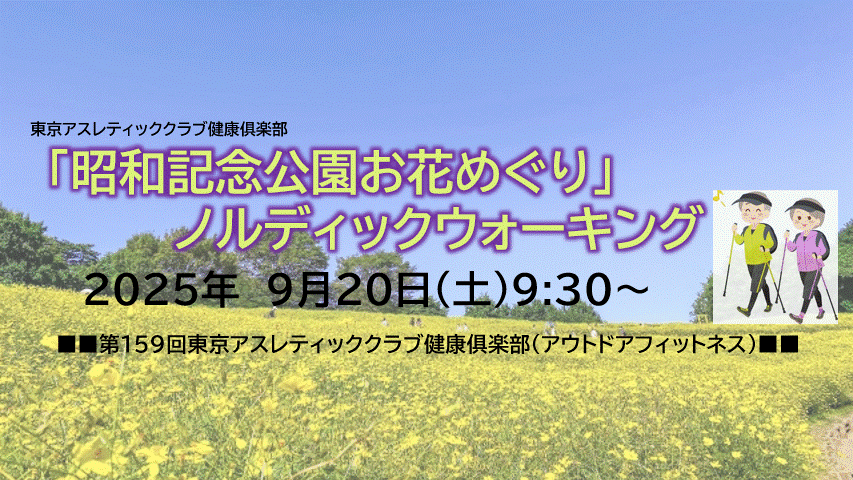 自然豊かで広大な立川の昭和記念公園内を、きれいに咲いているお花を巡りながら、ノルディックウォーキングにて約2時間周ります。今回はレモンブライト、コスモスセンセーション、ヒガンバナ、ブーケガーデン(が見頃予定)めぐりです!