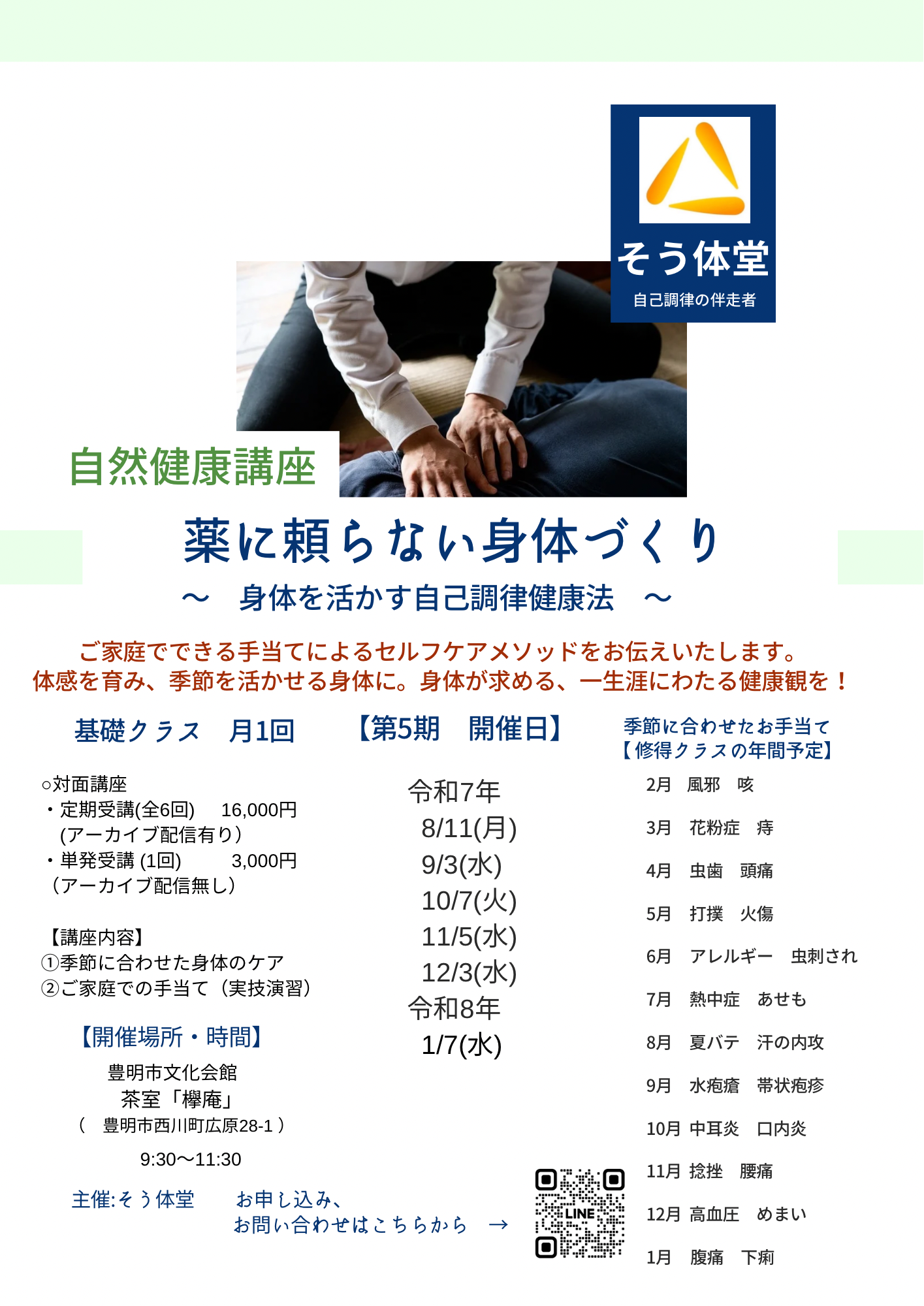 ※過去に、そう体堂講座の受講経験者は、ステップアップ講座である「修得クラス」へのご受講をおすすめいたします。