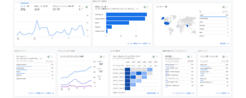 標準レポートとは、Googleアナリティクス4にあらかじめ設定されているレポート画面です。WEBサイトにアクセスしたユーザーの概要や行動を知ることができます。