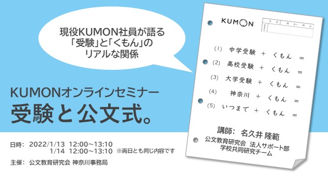 そんな「受験にむけての公文」について、公文式教材・指導と受験の双方を熟知した現役のKUMONの社員から、神奈川県における中学校・高校・大学それぞれの受験と公文式のリアルな関係について具体的にお伝えさせていただきます。