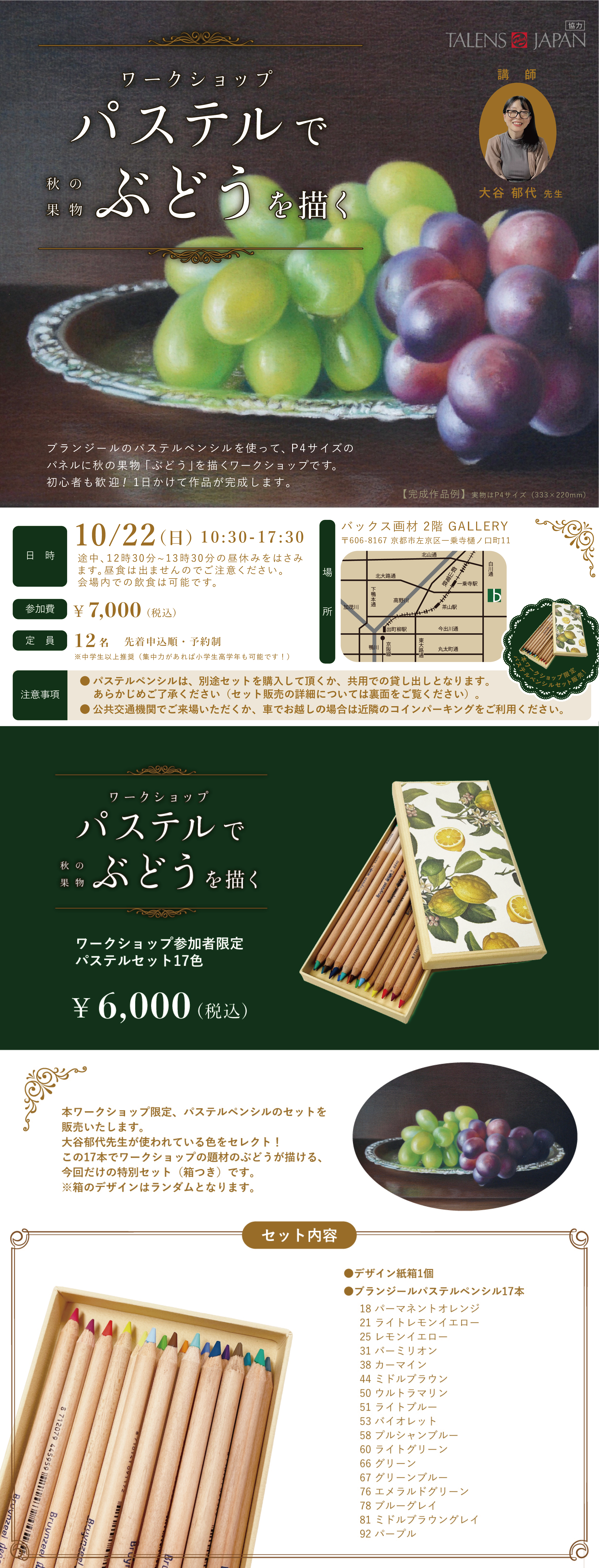 パステルペンシルは別途セットを購入していただくか、共用での貸し出しとなります。