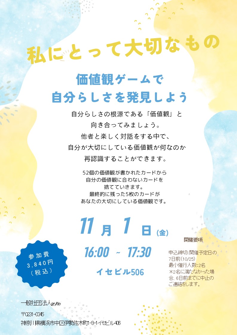 最終的に残った5枚のカードがあなたの大切にしている価値観です。