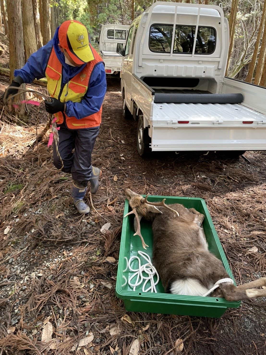 鹿がくくり罠にかかっているところからこの企画は始まります。