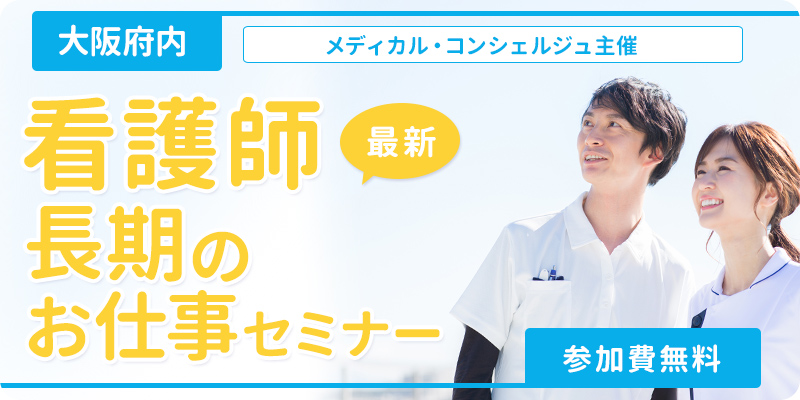 『大阪市内~北部エリア:【急募】応援ナース・長期派遣のお仕事紹介セミナー』を開催いたします。