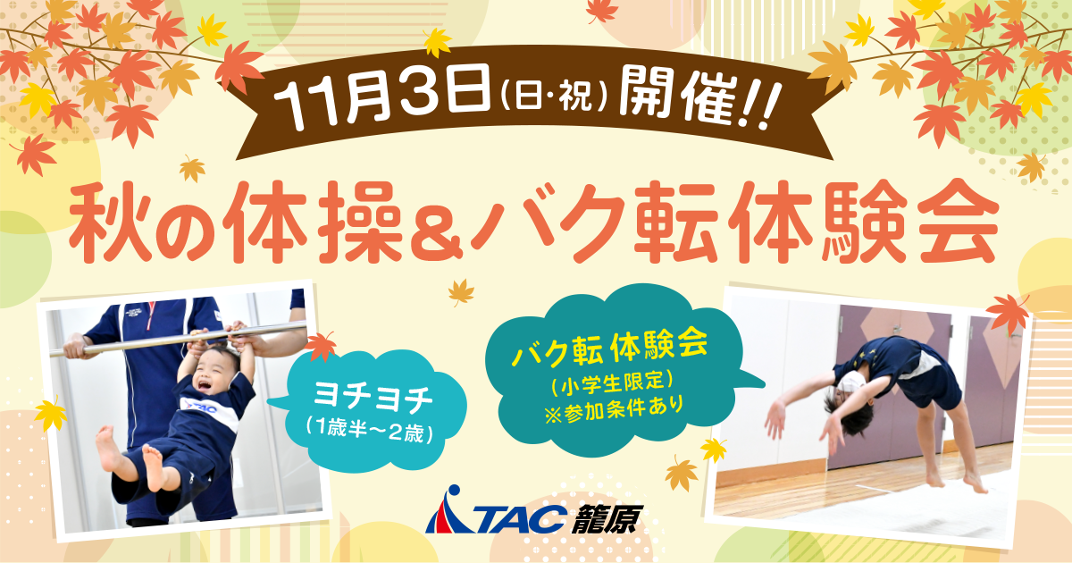 11月3日(祝日)に秋の体操&バク転体験会を開催します★