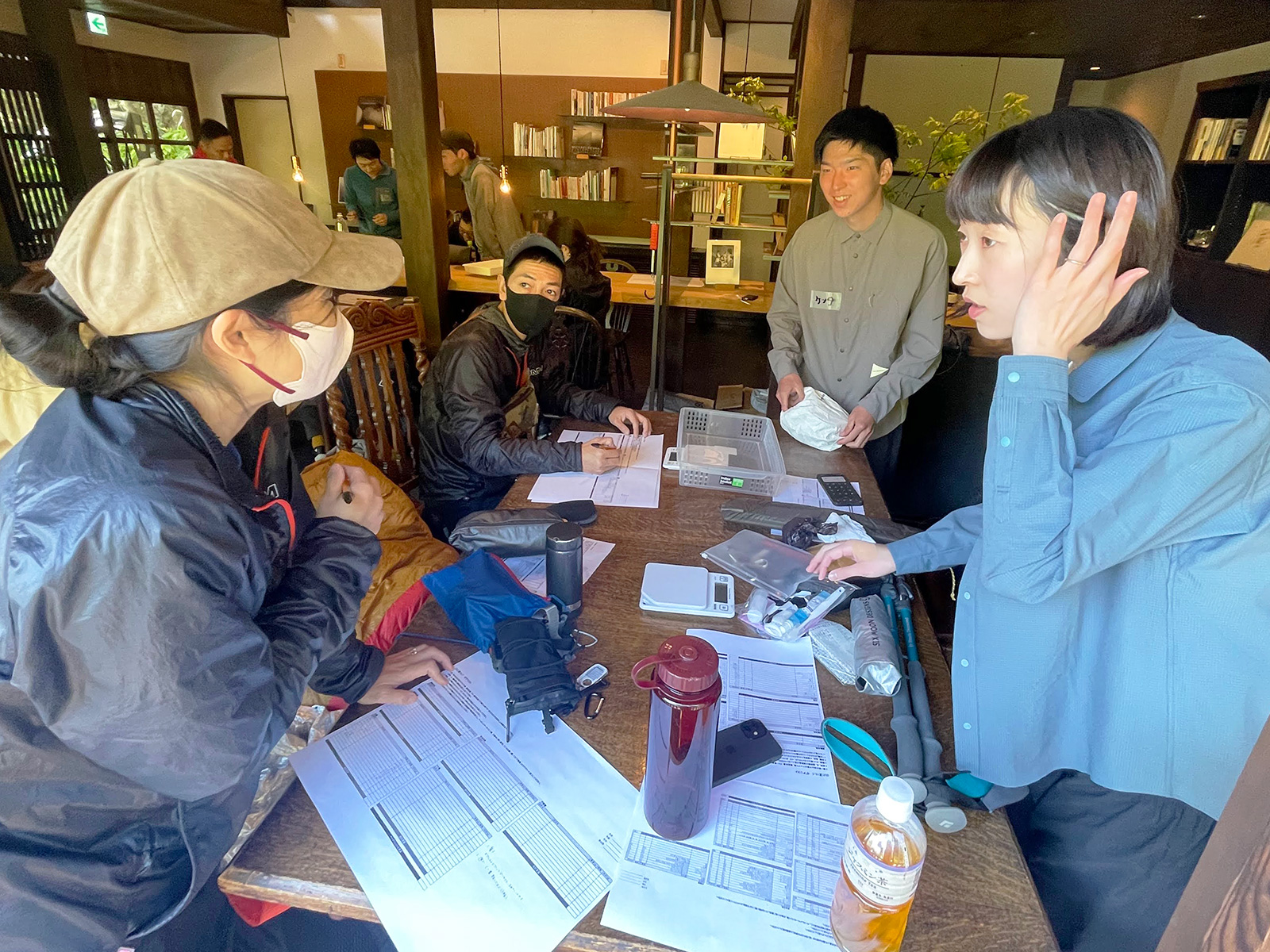 山と道HLC関西アンバサダーの中川を講師に、各自が持参した道具のギアリストを作成しながら道具の取捨選択の方法を知り、UL装備化の手順やポイントを座学形式で学んでいきます。