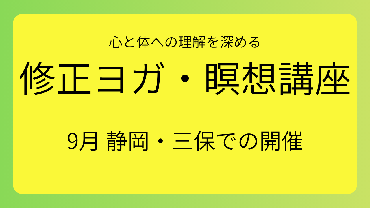 ①9月26日 16:30〜18:00 「修正ヨガ実践法の基礎と瞑想」担当 珠数孝