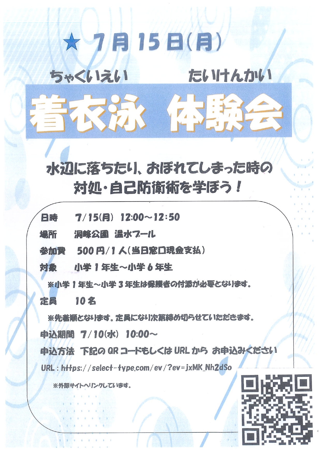 夏休みを前に洞峰公園のプールで着衣泳体験会を開催!