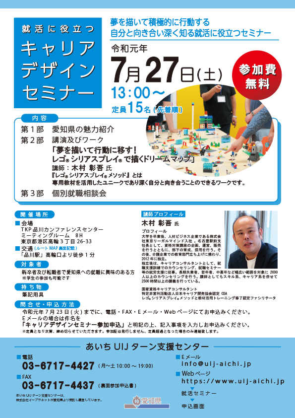 本セミナーでは、専用教材を活用したユニークであり深く自分と向き合うことのできるワーク「レゴ®シリアスプレイ®メソッド」でドリームマップを作ります。