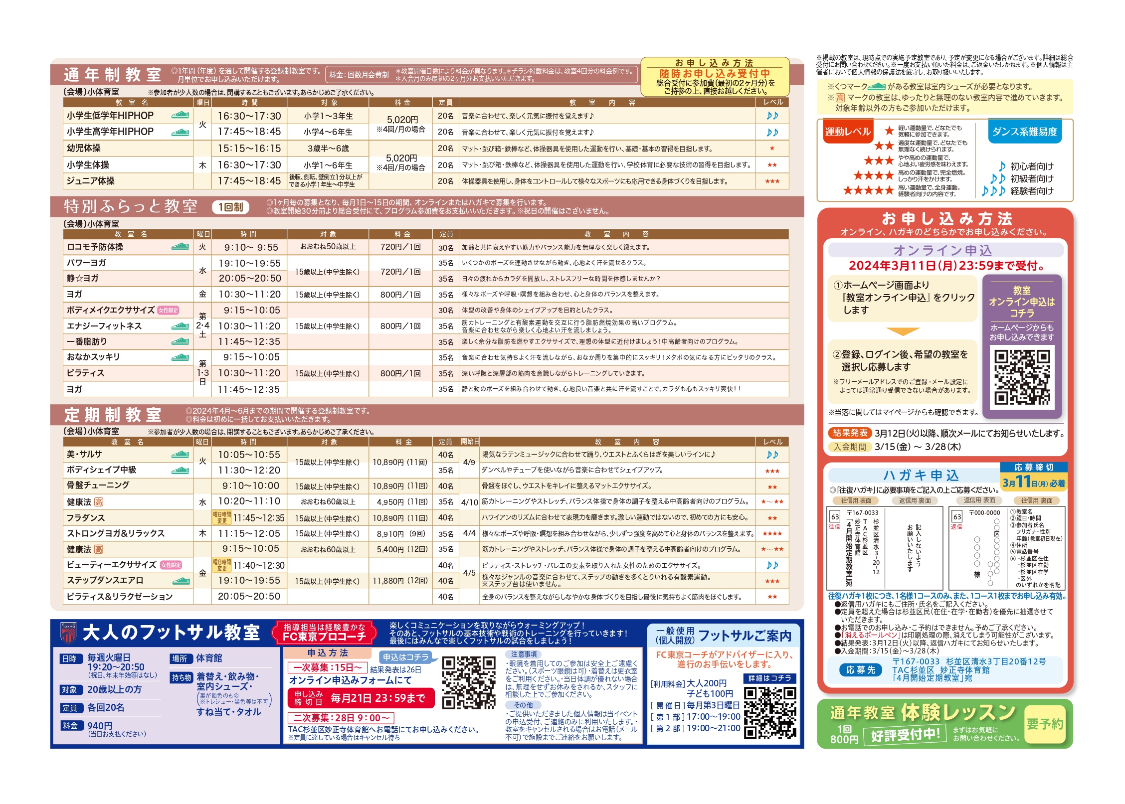 ・ 教室プログラムは定期的に見直してまいります。予めご了承ください。