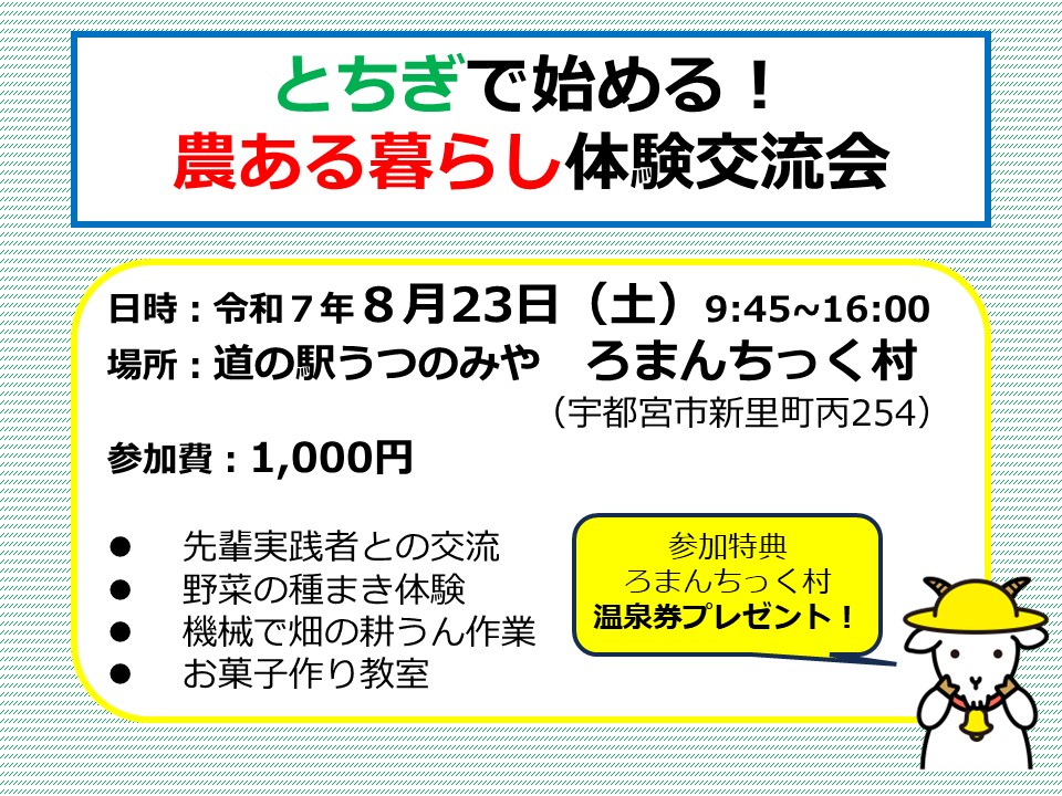 農ある暮らし体験交流会を、道の駅うつのみや「ろまんちっく村」で開催します!