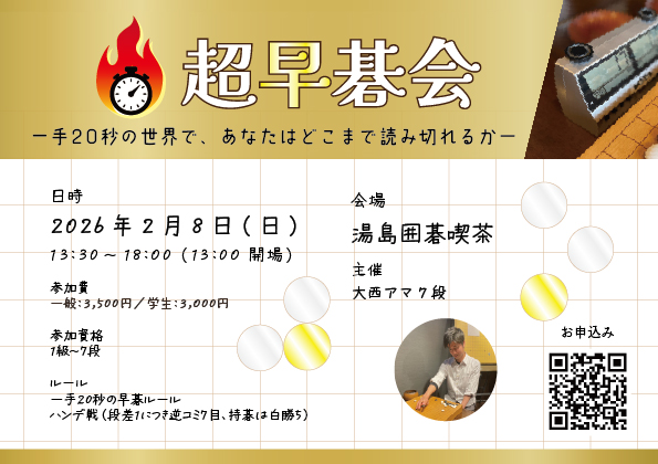 スピードと読みの力を試したいあなたに贈る、超早碁オンリーのイベントです!