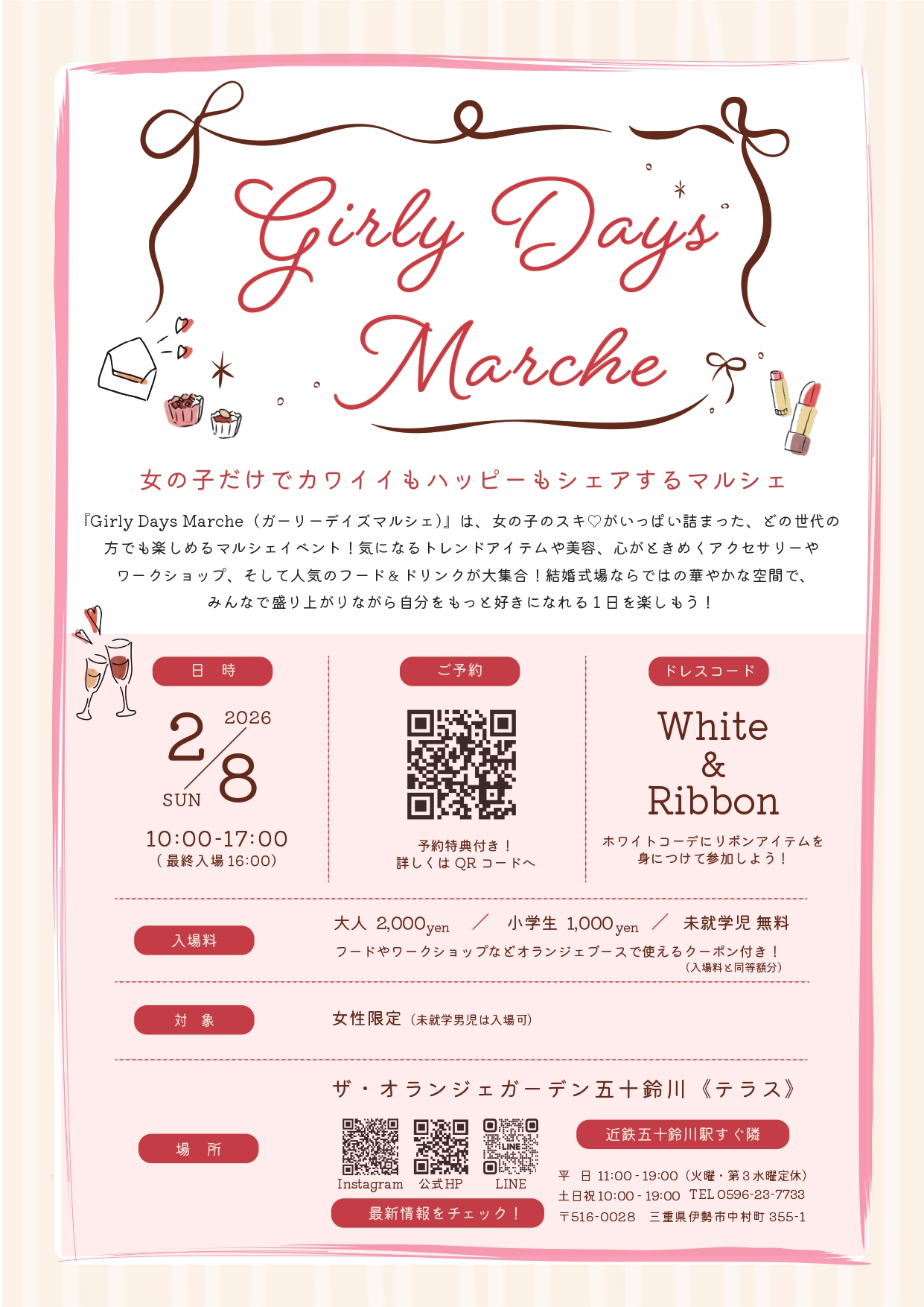 『Girly Days Marche(ガーリーデイズマルシェ)』は女の子のスキ♡がいっぱい詰まった、どの世代の方でも楽しめるマルシェイベント!