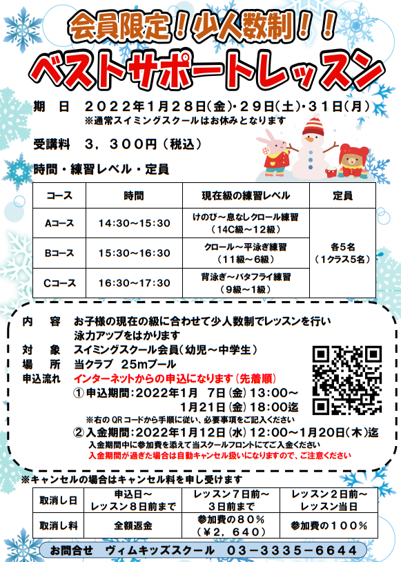 1月12日~1月20日迄にヴィムスポーツアベニュウフロントまで参加費の納入をお願いいたします