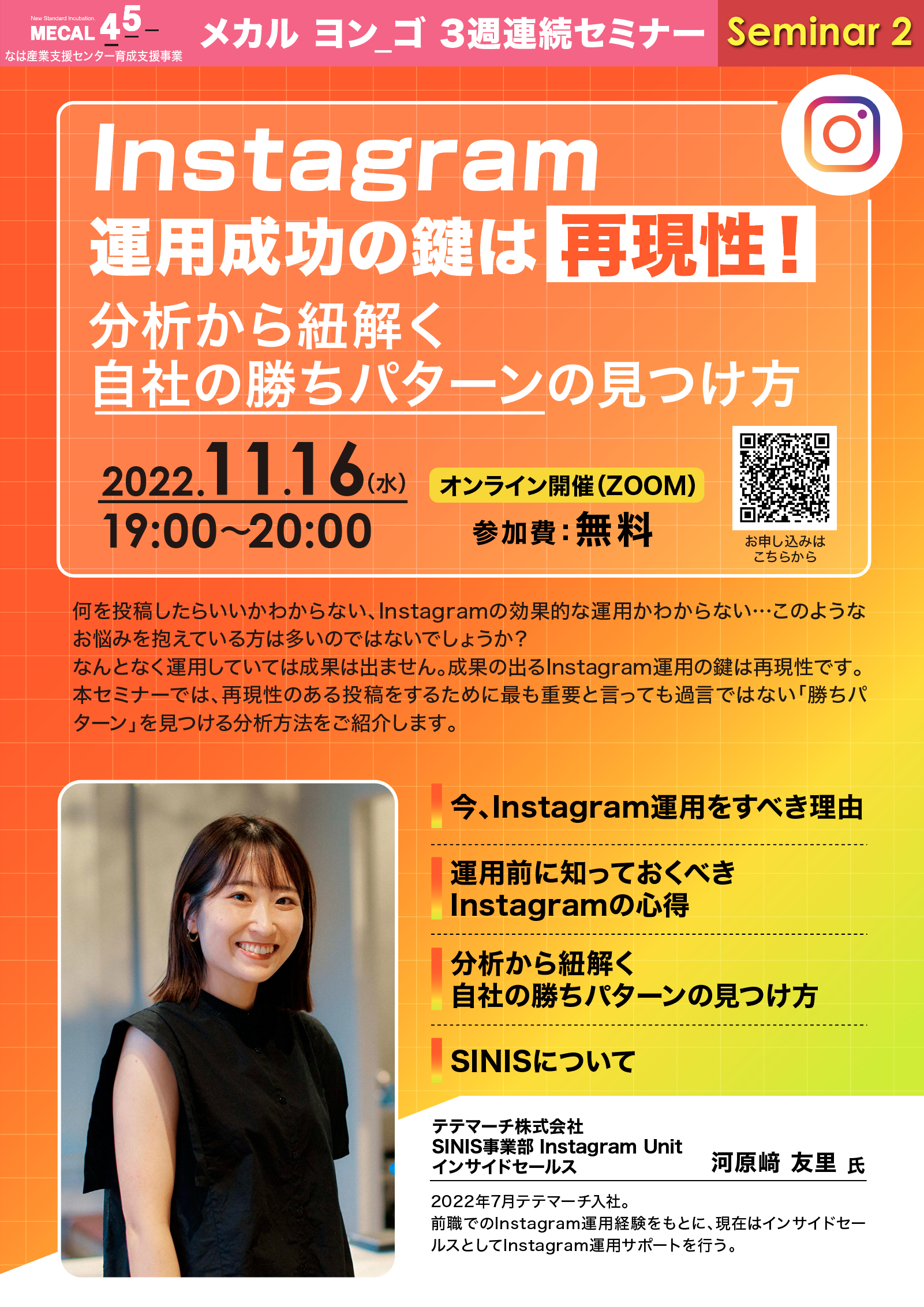 「Instagram運用成功の鍵は再現性!分析から紐解く自社の勝ちパターンの見つけ方」セミナーのお申込みフォームです。