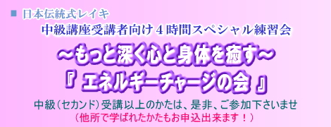 ・『~もっと深く心と身体を癒す~エネルギーチャージの会』4時間スペシャル練習会です。
