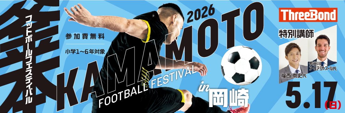 岡﨑で行う本大会は、元日本代表の福西 崇史氏と長谷川 アーリア ジャス-ル氏の2名を講師にお迎えし開催します。