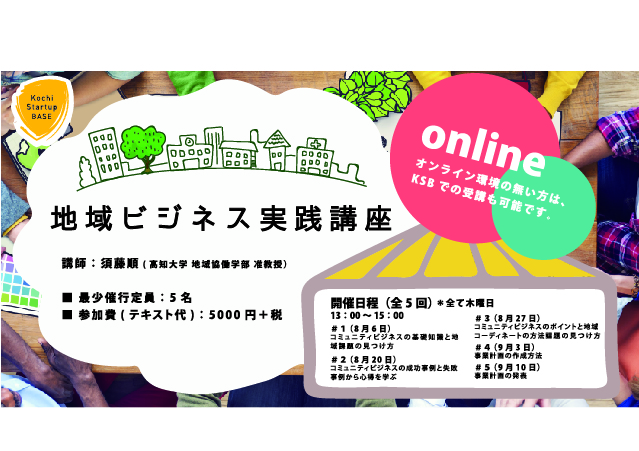 本講座では地域ビジネスの基本的な考え方や事例、よりよく事業を進めていくために求められる地域との連携や協働の進め方などについて学びます。