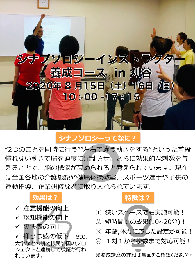 シナプソロジーインストラクター養成コースを愛知県刈谷にて開催いたします!