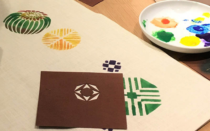 動物や植物など様ざまな伊砂文様オリジナルの型紙を組み合わせ、世界で1枚のふろしきが作れます。