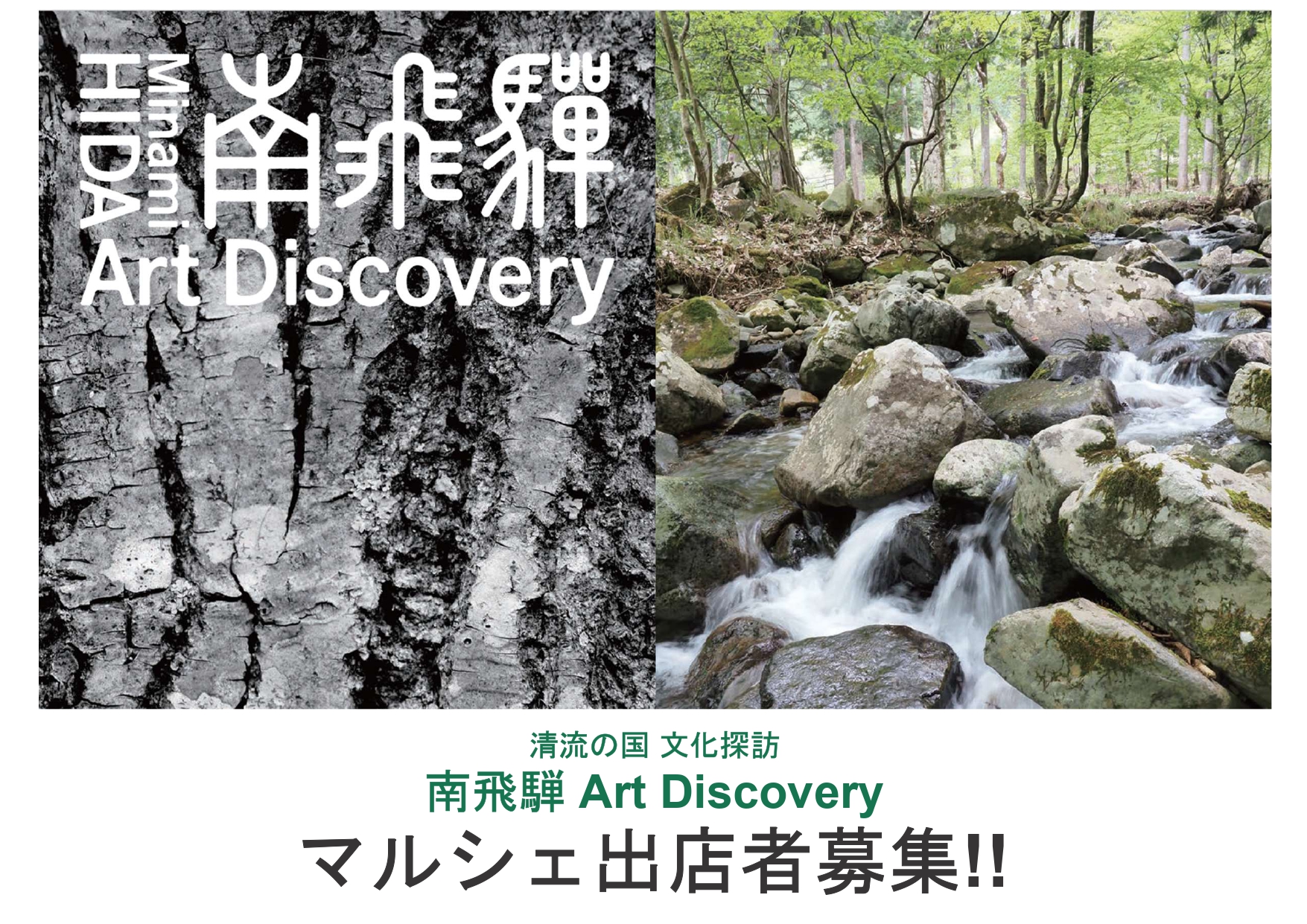 南飛騨Art Discoveryは、芸術文化の力によって地域の魅力を発掘・発見し、地域の活性化を目指すプロジェクトです。現代アートの作品・パフォーマンス、セミナー、マルシェなどを展開します。