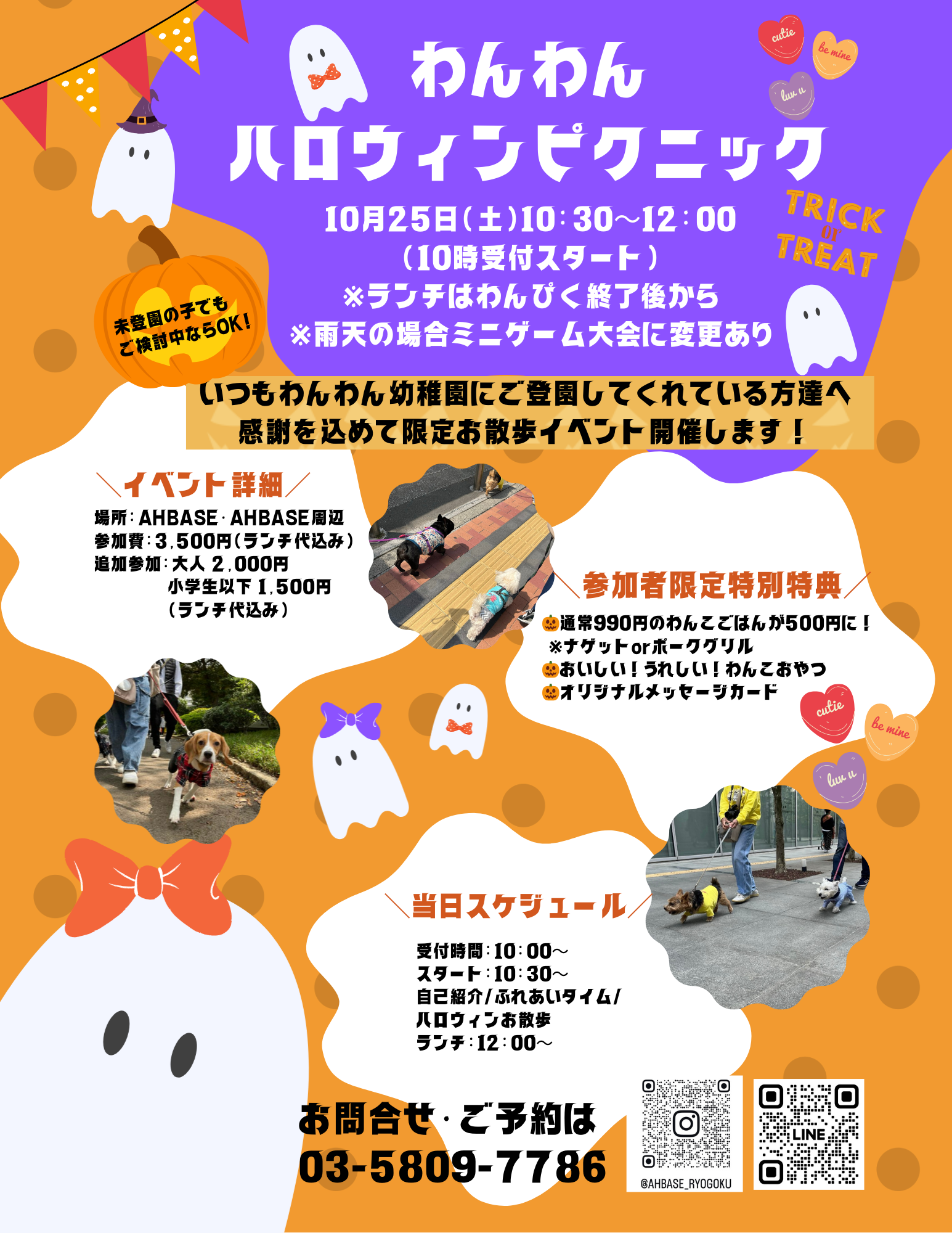 幼稚園に通ってくださっている皆様にスタッフからありがとうを込めてハロウィン限定のお散歩わんわんピクニックを開催いたします♪