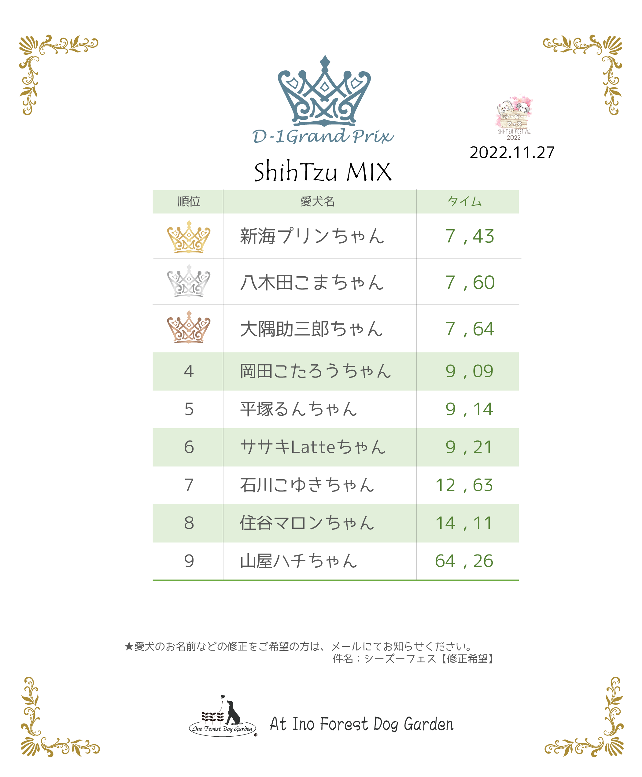 D-1グランプリ【シーズーフェス2022】へご参加いただきありがとうございました。