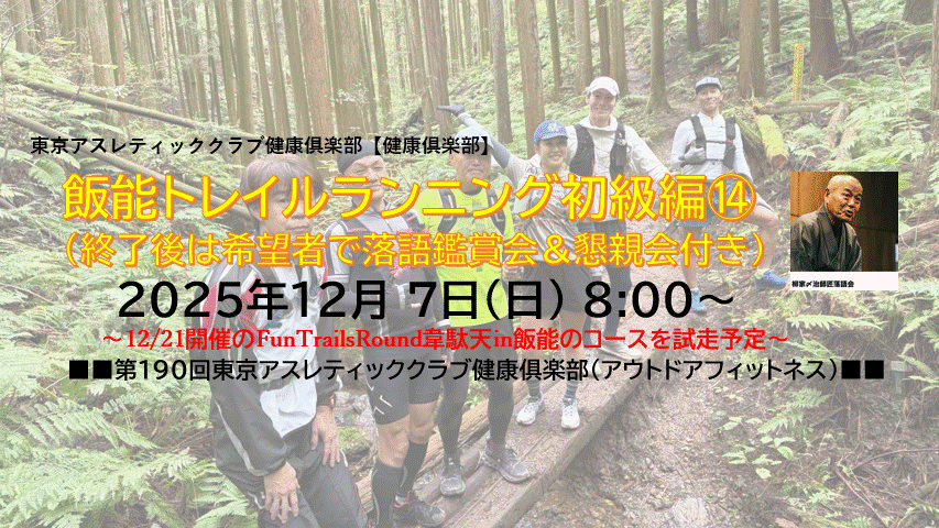 ■■■TAC健康俱楽部イベント 飯能トレイルランニング初級編⑭(終了後は希望者で落語鑑賞会&懇親会付き)■■■