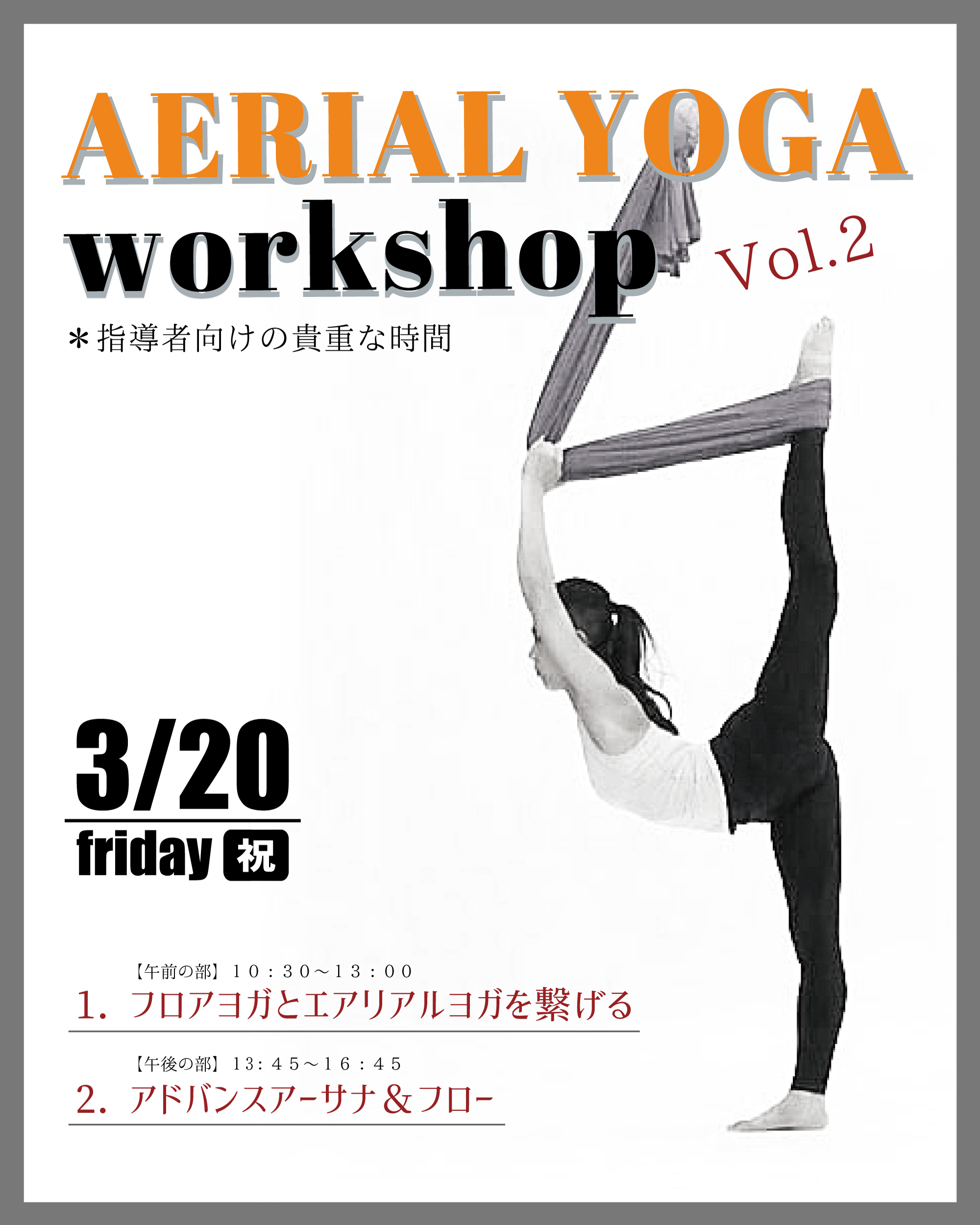 関西の皆様と「エアリアルヨガ」を通じてお会いできるのを楽しみにしております!!
