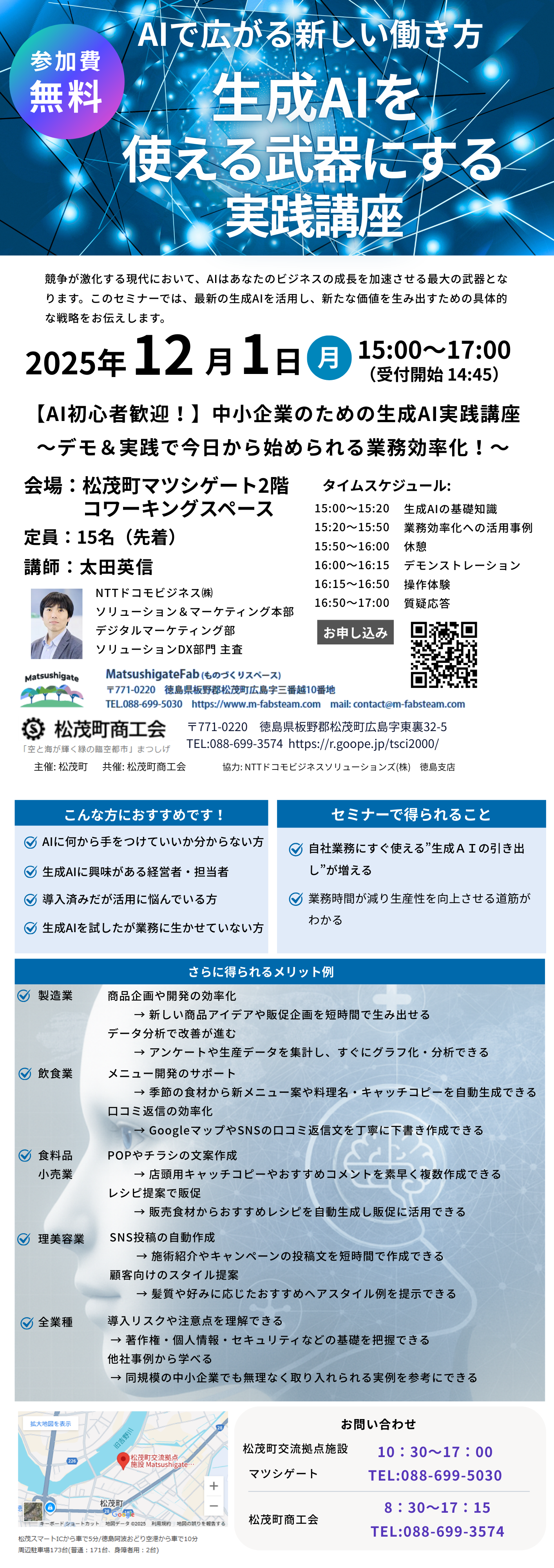 このセミナーでは、最新の生成AIを活用し、新たな価値を生み出すための具体的な戦略をお伝えします。