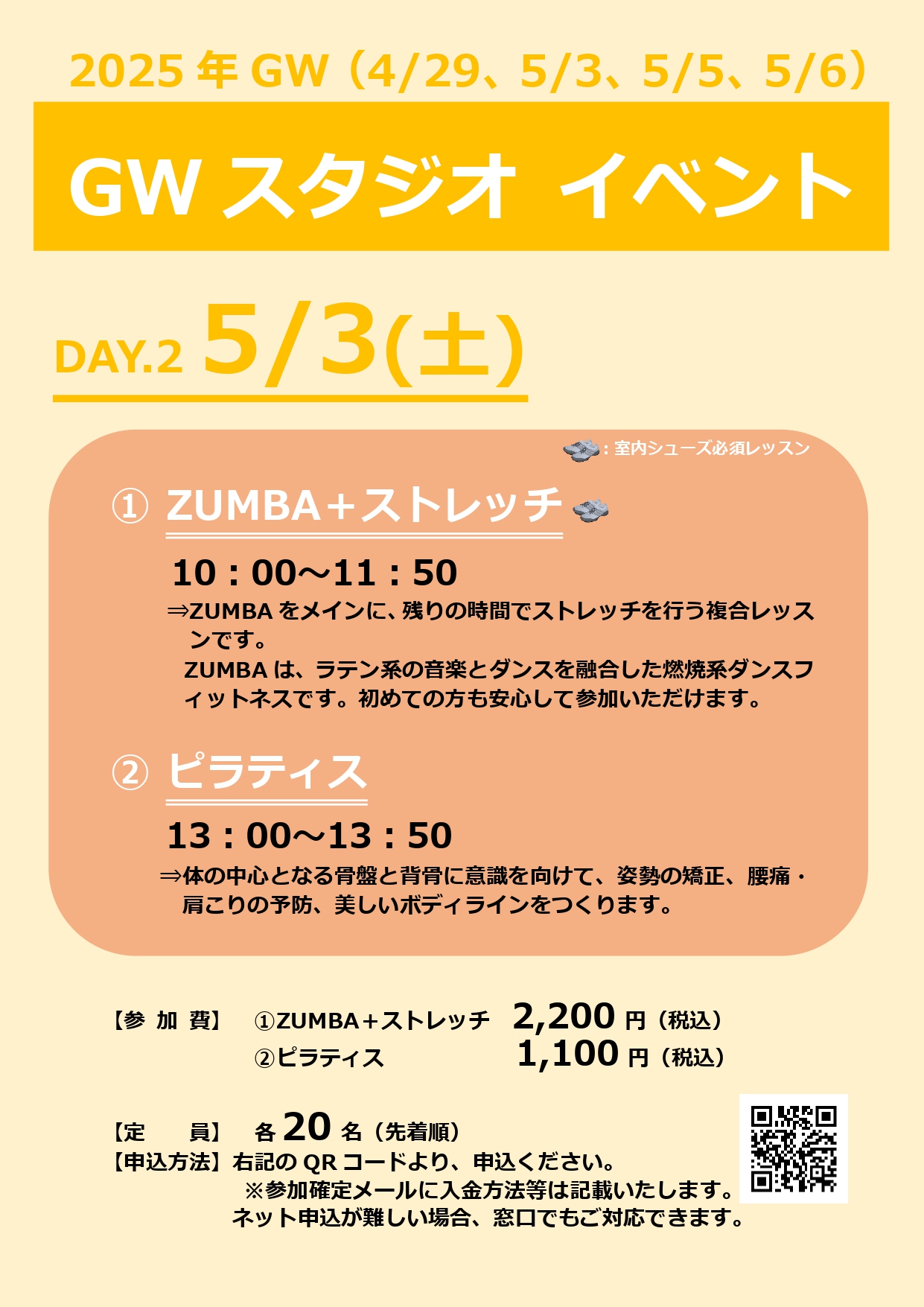 ZUMBAをメインに、残りの時間でストレッチを行う複合レッスンです。