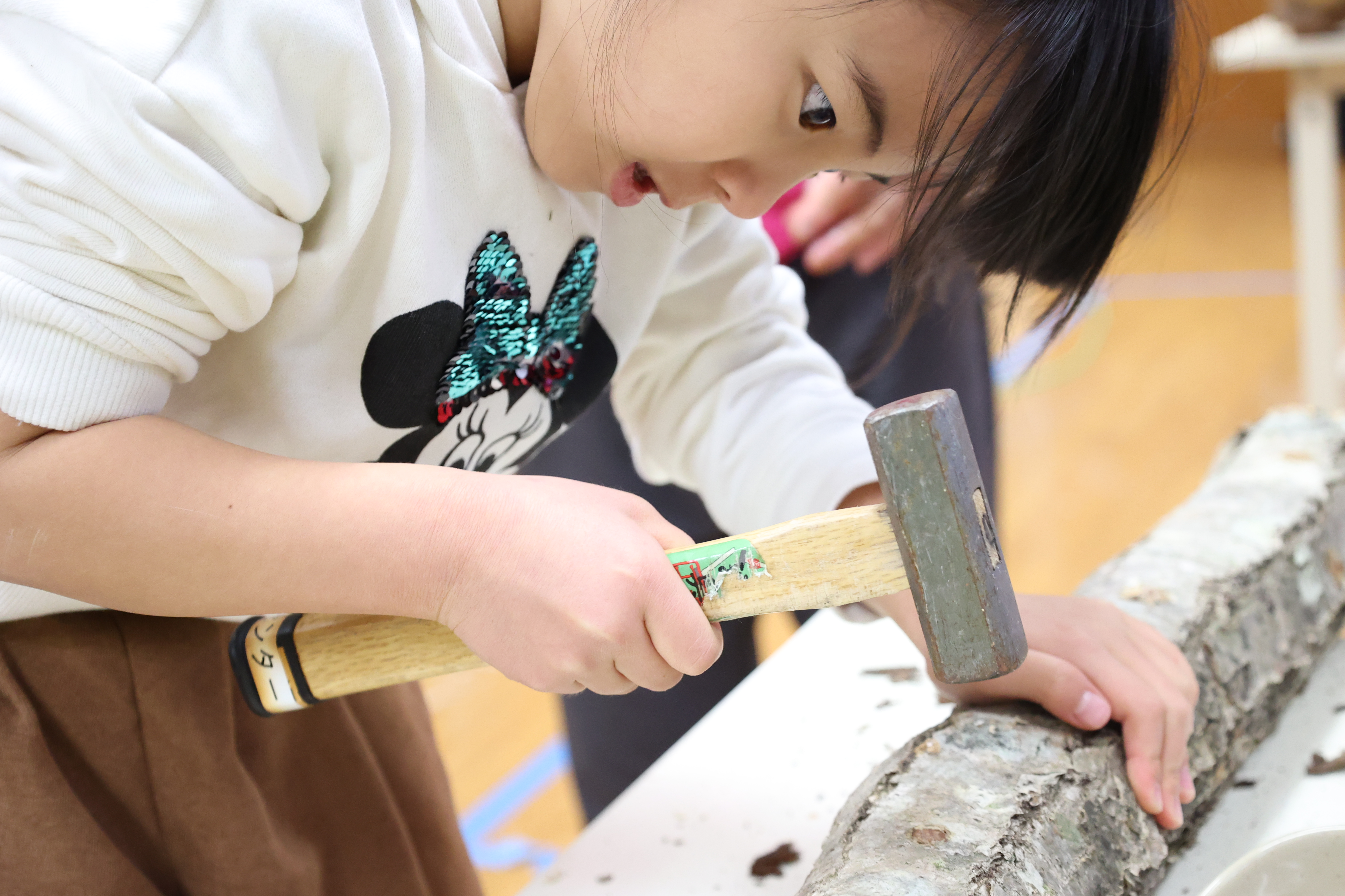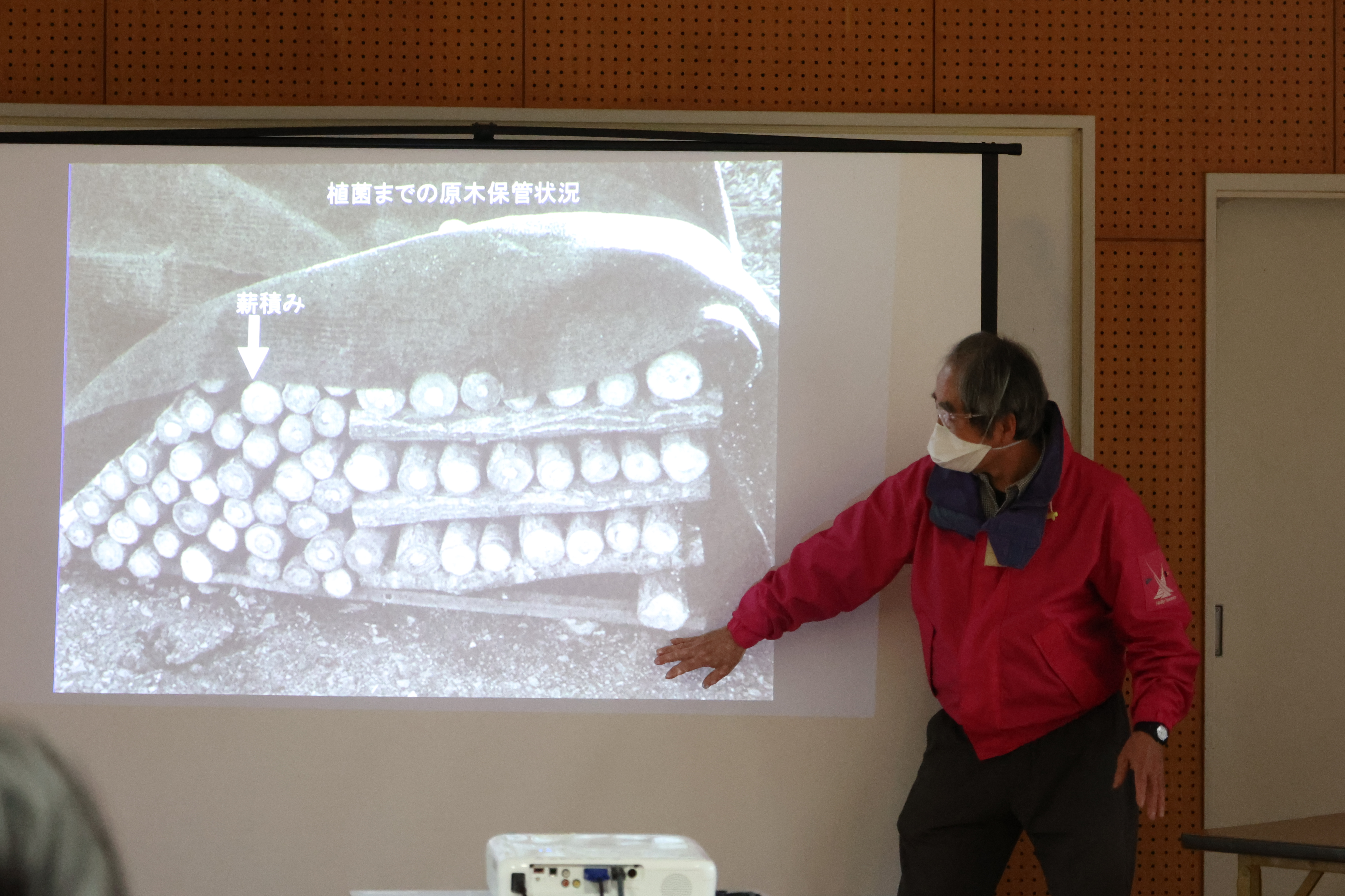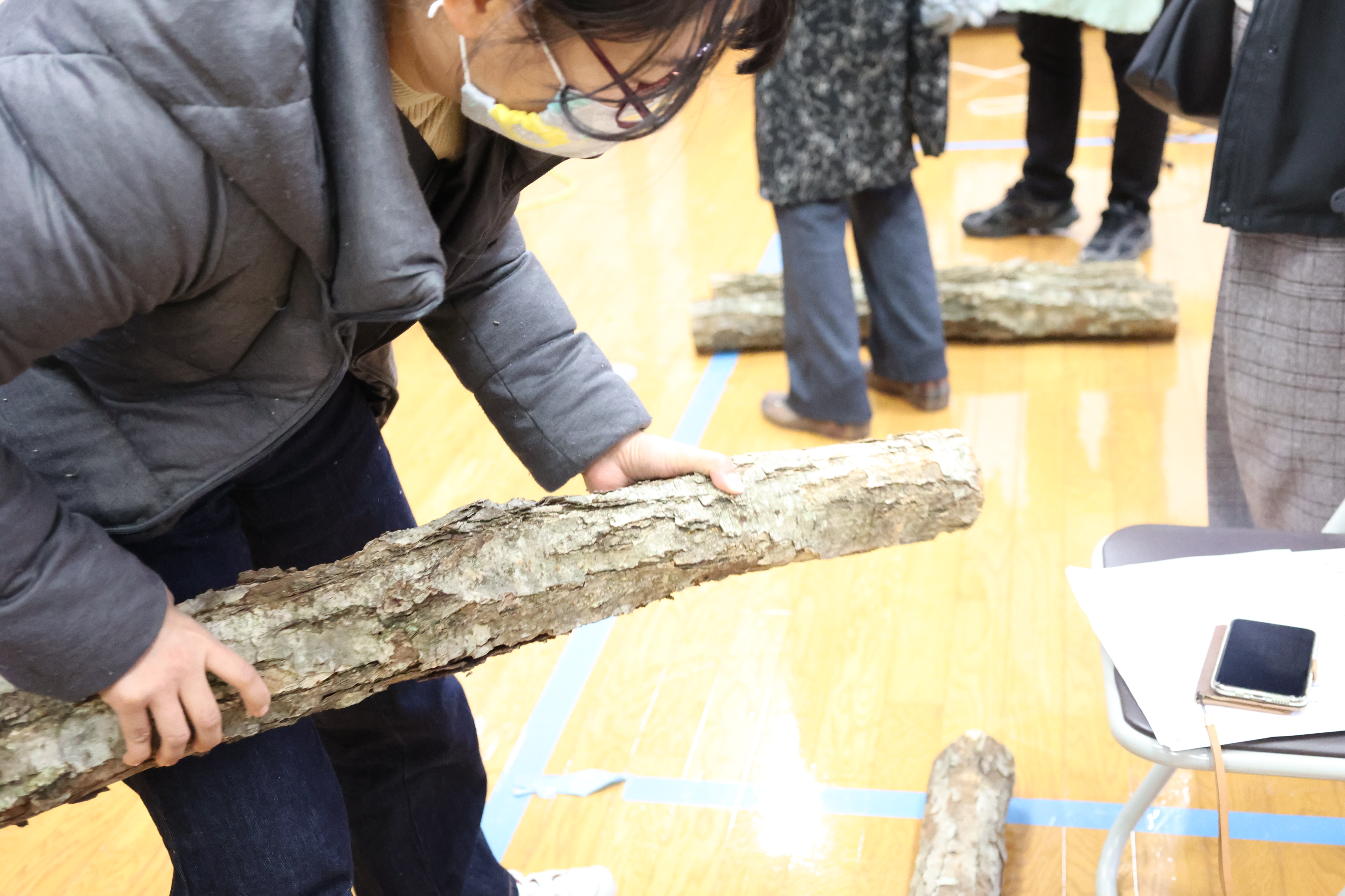 シイタケ植菌体験: 井本氏の指導のもと、自分の手でシイタケの原木に菌を植えつけましょう。参加者全員に、植えた原木2本をプレゼント!自宅でのシイタケ栽培が楽しめます。