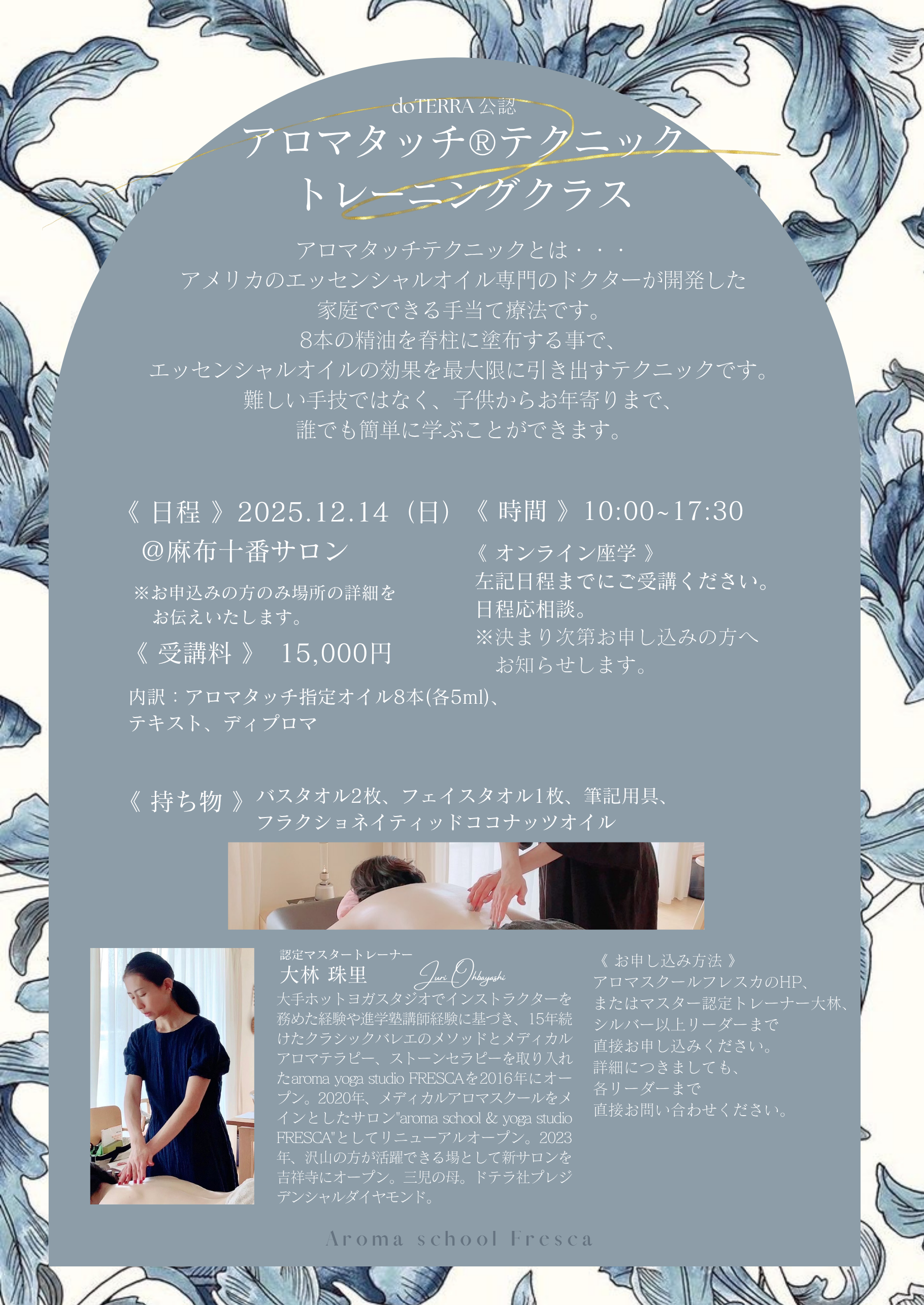 2025/12/14(日) 麻布十番 アロマタッチ®トレーニングクラス