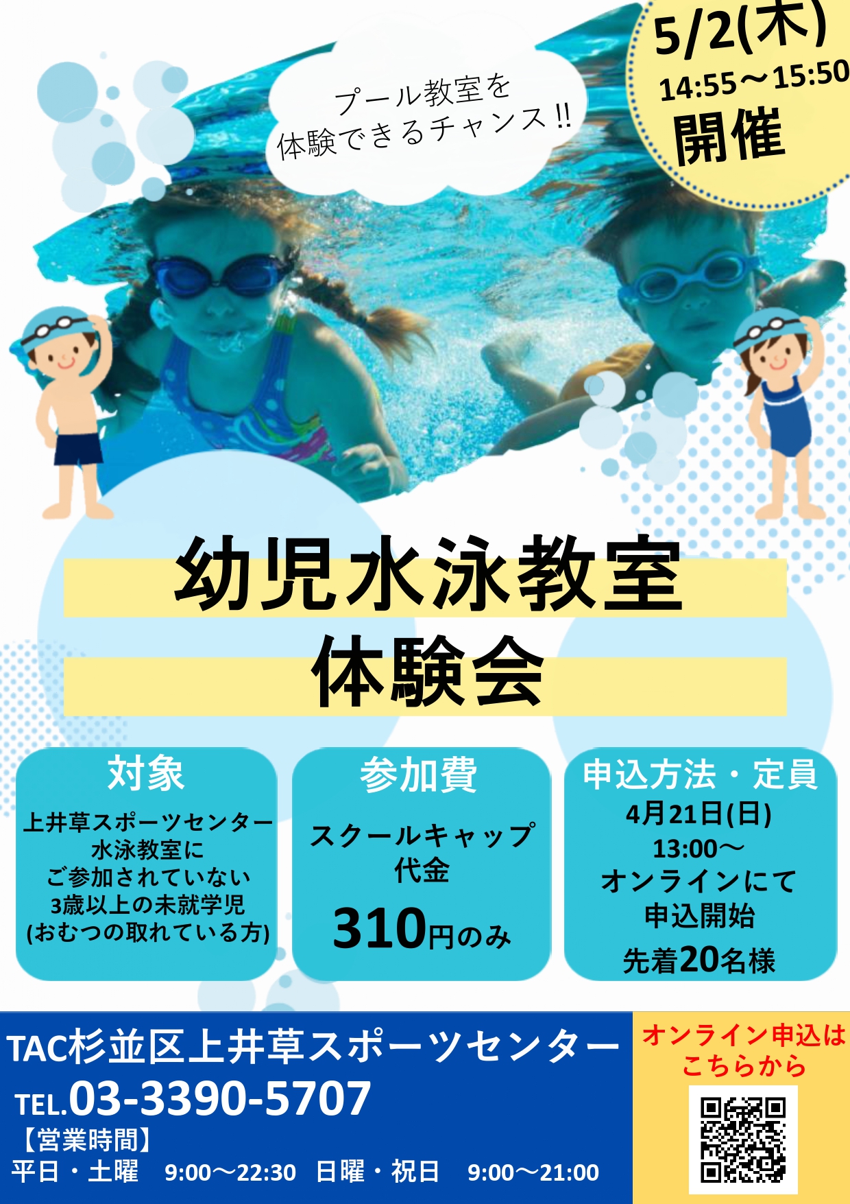 普段通年制で行っている幼児水泳教室の流れを体験できます。