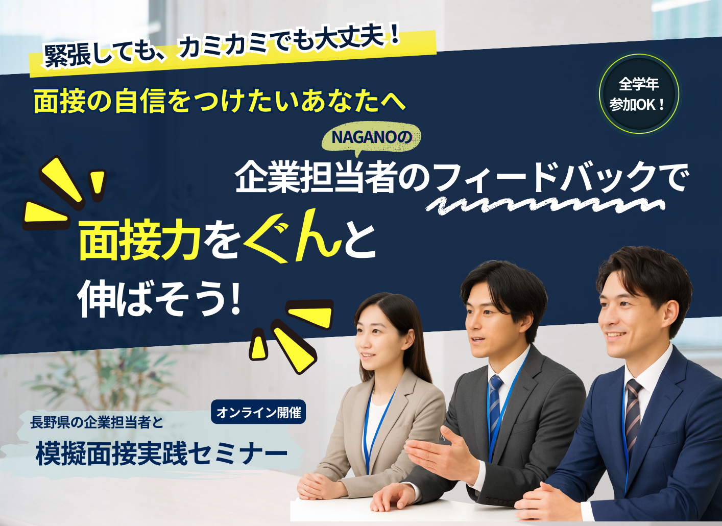長野県内に就職を希望する学生・卒業後概ね3年以内の方何年生でもご参加いただけます。