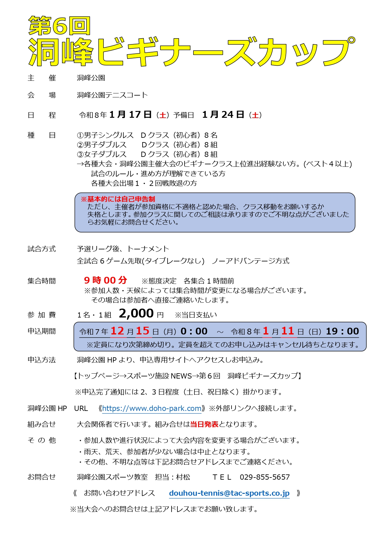 【トップページ→スポーツ施設NEWS→第6回洞峰ビギナーズカップ】