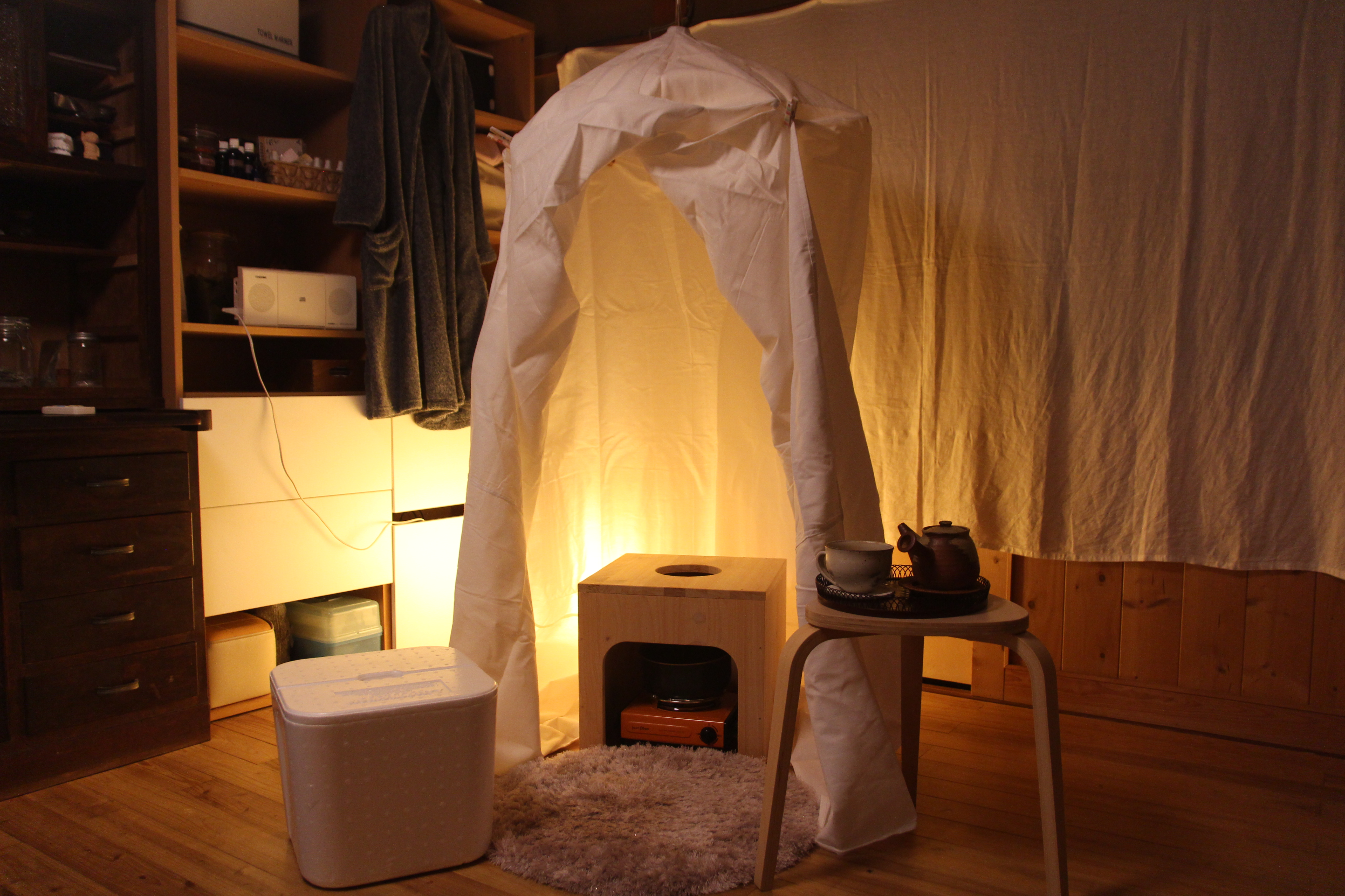 ハーブテントとは、一人分の椅子を入れた小さなスチームテントの中に入り、蒸したハーブの薬効成分を鼻や口、皮膚から吸収する美容健康法です。