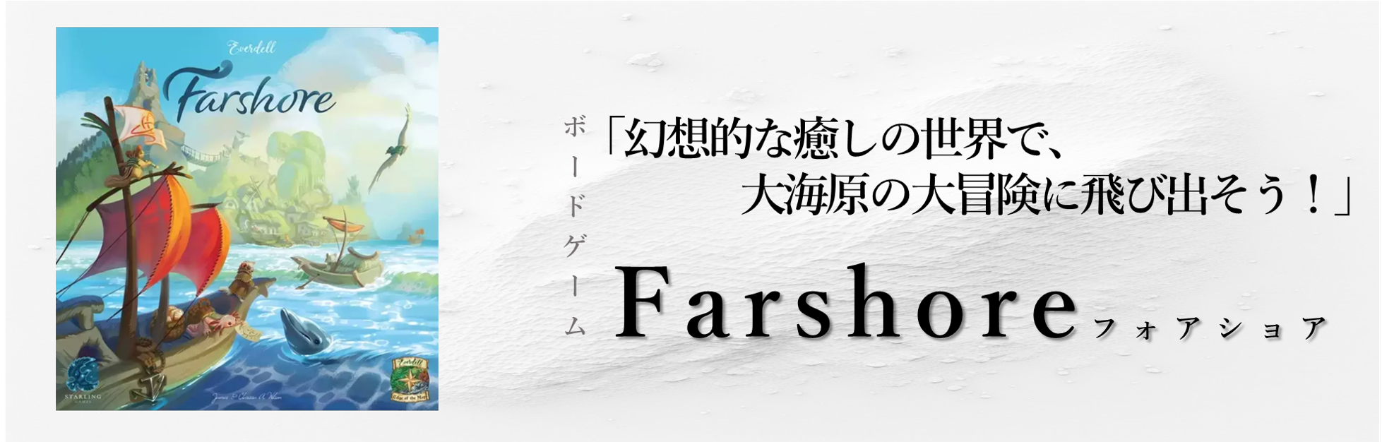 『フォアショア/Foreshore』は、美しい海の世界を舞台に、都市を発展させながら探索を進めるボードゲーム。『エバーデール』の魅力を受け継ぎながら、新たな海洋の冒険へと旅立つこのゲームを、一緒に楽しみませんか?