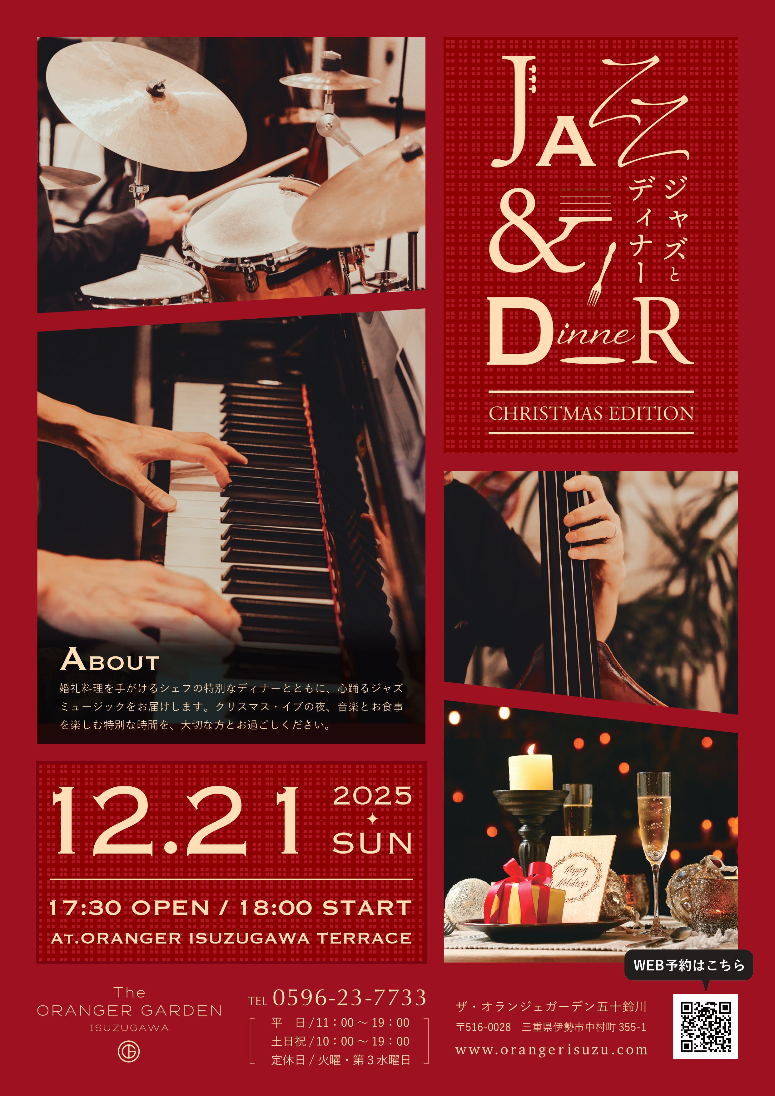 ザ・オランジェガーデン五十鈴川のシェフが手がける、クリスマス限定コースをご用意いたします。■ 食材のアレルギーがある方はご予約時にお申し出ください。