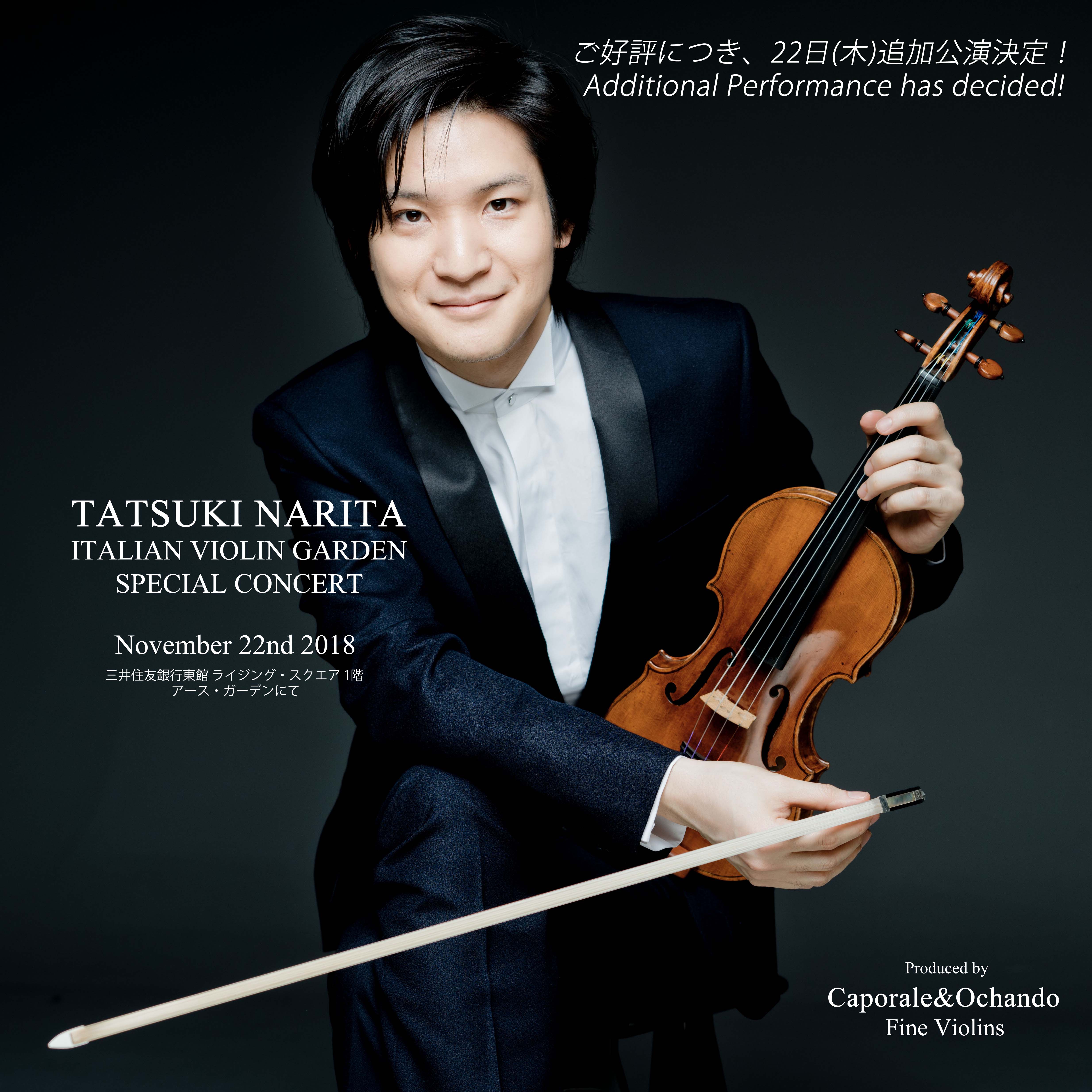 2018年11月21日、22日、23日に開催されるカポラレ&オチャンド主催「イタリアン・ヴァイオリン展〜ITALIAN VIOLIN GARDEN〜」内スペシャルイベントです。国内外で活躍中のヴァイオリニスト成田達輝をソリストに迎え、一夜限りのチェンバー・オーケストラによるスペシャルコンサートをお届けします。