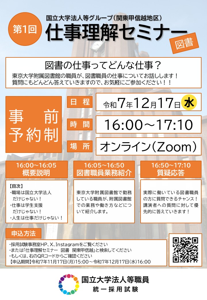 ・説明会の内容等に追加や変更が生じた場合は、このページでお知らせします。・申込受付開始は11月17日(月)15:00~12月17日(水)16:00(開始直前)まで受付いたします。