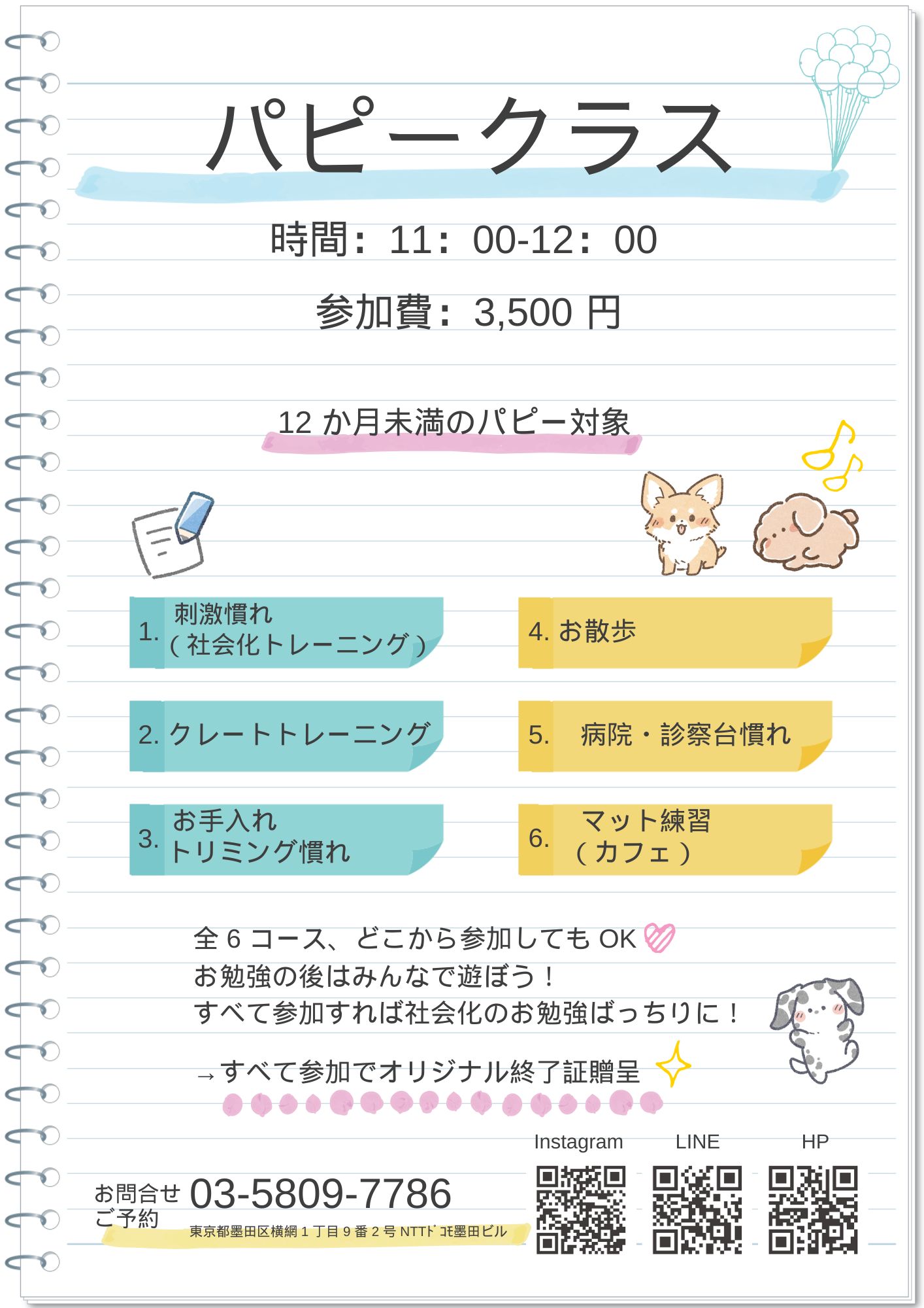 ご参加のわんちゃん同士と交流で社会性を身につけるだけでなく、パピー期に大切なトレーニングも学べちゃう、パピーには是非参加していただきたいイベント!!