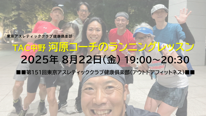 ●集合:東京アスレティッククラブ中野本店 2階フロント前集合 18:50-19:00 〒164-0001中野区中野2-14-16