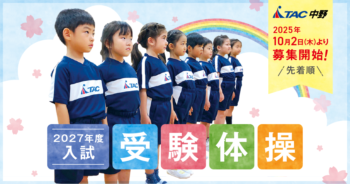 TACの受験体操クラスでは、運動能力の向上だけではなく、基本的な挨拶や言葉遣い・取り組み姿勢などを学んでいきます。また、協調性や気遣い・美しい身のこなしなど受験への心構えを育みます。