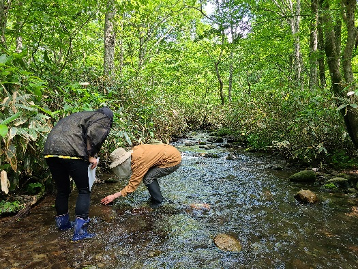 積丹岳の麓を流れる川には、いきものがたくさん!カゲロウやトビケラなどの水生昆虫を川の博士と一緒に探そう。