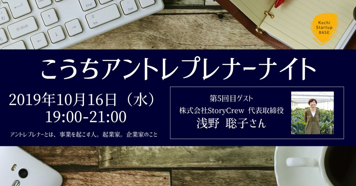 こうちアントレプレナーナイト、第5回目となるセミナーでは、株式会社StoryCrew 代表取締役・浅野聡子さんをゲスト講師にお迎えします。
