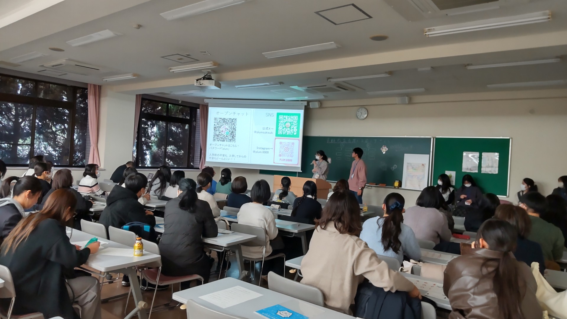 全体会で先輩学生・生協職員の大学生活に関するプレゼンテーションをお聞きいただいた後、2グループに分かれます。